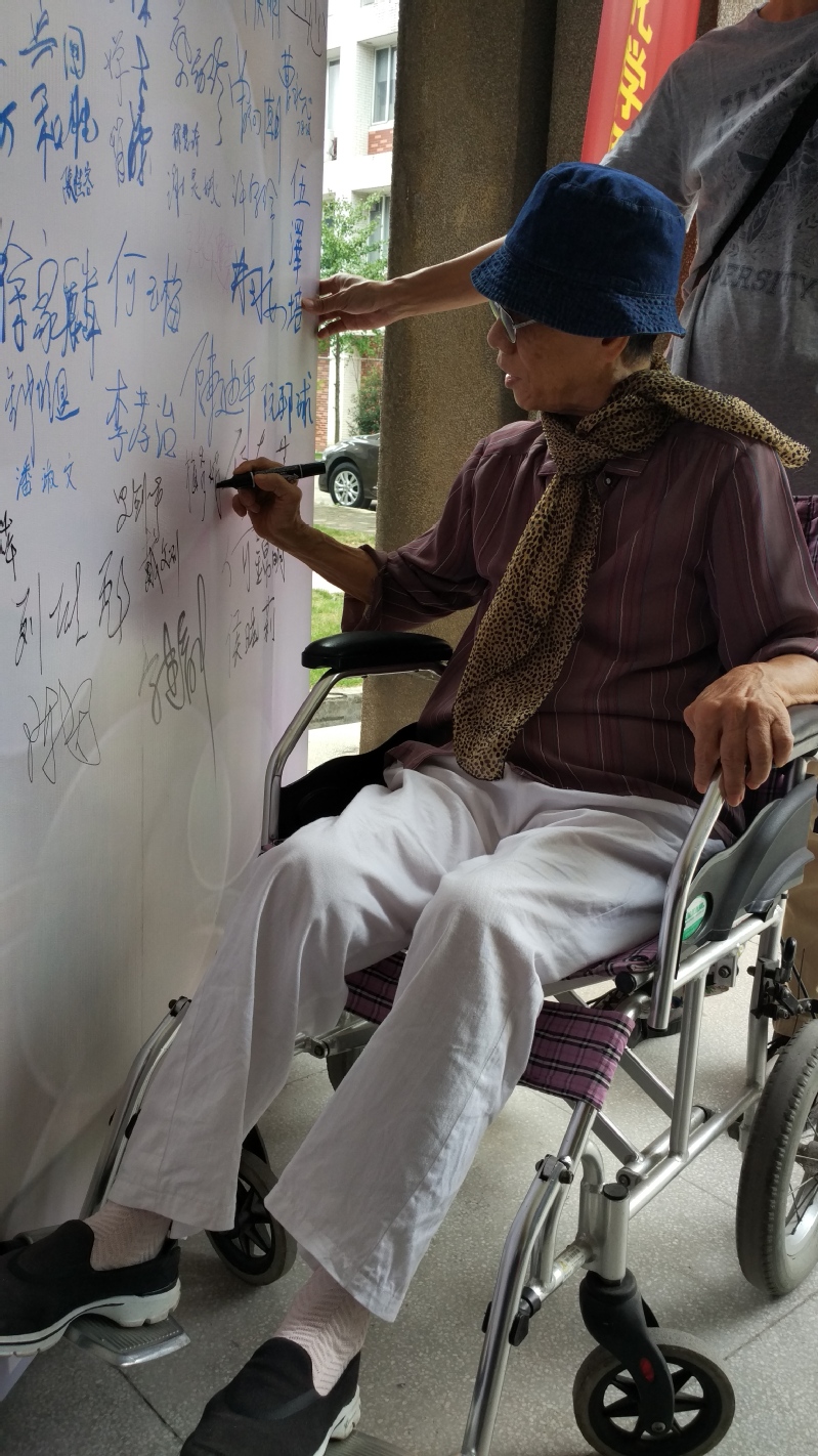 有一位59级的老校友,即便坐在轮椅上,也坚持来到现场。靠近化学楼时,她近乎虔诚地感受着化学楼的气息,并感慨道:“我毕业时还没有这栋楼呢······”临走时,老人家衷心表达了对暨大化学系的祝福:“希望你们化学系新一代青出于蓝而胜于蓝呐!