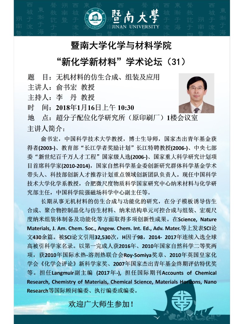 “新化学新材料”学术论坛(31)-俞书宏教授