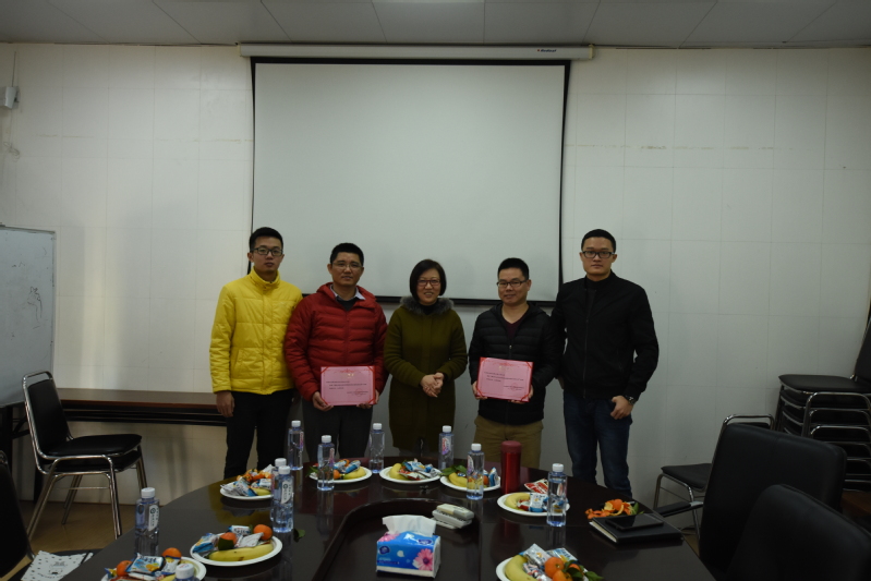 最后,会议对先进支部、优秀党务工作者进行了表彰。化学系总支教工第二支部、材料与工程系总支研究生支部获得“先进党支部”荣誉称号;邓穗平、孙月光、王建鹏获得“优秀党务工作者”荣誉称号。邵桂珍为他们颁发了荣誉证书,对他们表示祝贺并鼓励他们继续发扬党员的先锋模范作用。