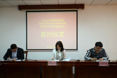 2018年1月22日下午,vwin德赢官网与中山大学惠州研究院合作签约仪式暨双边合作发展研讨会在惠州召开,双方共建“校外教育实践基地”,并与深圳市尤佳环境科技有限公司、惠州市华泓新材料股份有限公司、惠州东方雨虹建筑材料有限责任公司、广东恒达胶管制品有限公司、惠州晟荣生物科技有限公司、惠州绿亚生物材料有限公司、惠州笃行纳米材料有限公司、惠州哈克森润滑油材料有限公司等8家企业签订人才培养合作协议。vwin德赢官网院长李丹,党委书记邵桂珍,副院长李红、陈填烽,校实验室与设备管理处处长徐石海,中山大学惠州研究院院长助理吴海波、陈宇,产学研办主管李启灵,人力资源部主管林泽灏及企业代表等参加了签约仪式。