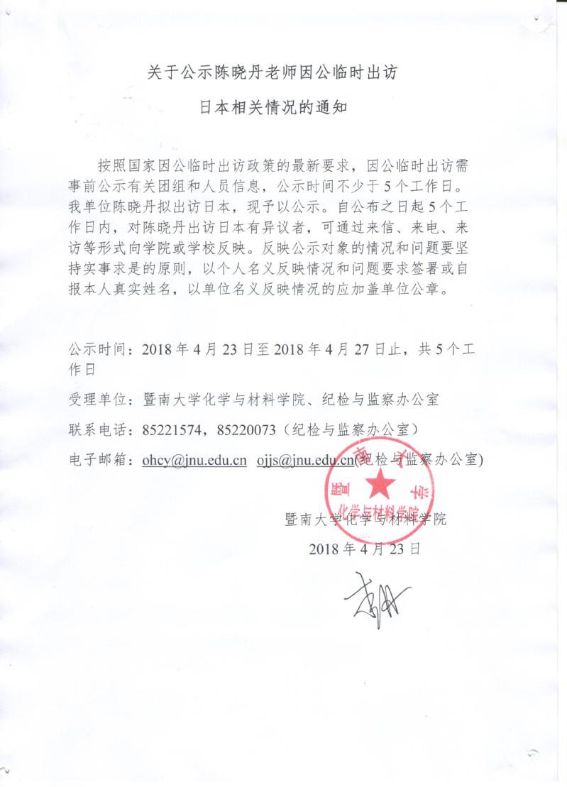 关于公示陈晓丹老师因公临时出访日本相关情况的通知
