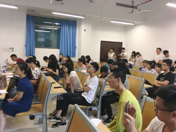 现场座无虚席,前来参加观摩会的同学认真听讲