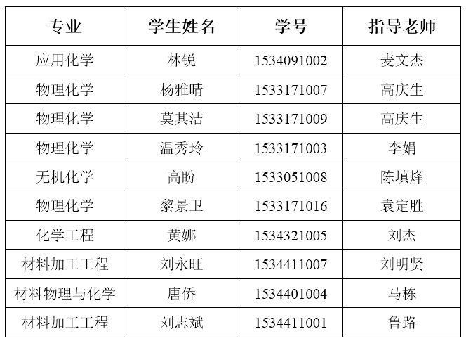 按照vwin德赢ac米兰官网优秀学位论文的相关评选细则,遵循“科学公正,注重创新,严格筛选,宁缺勿滥”的原则,化学学科组、材料科学与工程学科组分别对申报的校级优秀学位论文进行了评选,推荐名单如下:
