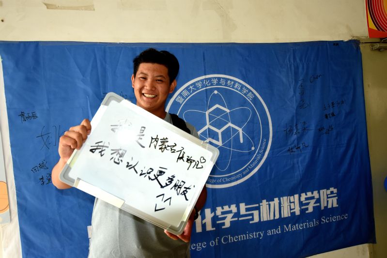 来自黑龙江18应用化学(创新班)的姜林鹏,昨日刚到校园,便赞叹不已:“暨大的教学楼非常宏伟,校园环境很适合学生的身心发展”。谈及对新学期的期望,姜同学表示自己要好好学习,同时会努力让自己的大学生活更加精彩。对于自己所选的化学专业,他说“期待与紧张并行,希望能够爱上这个学科”。