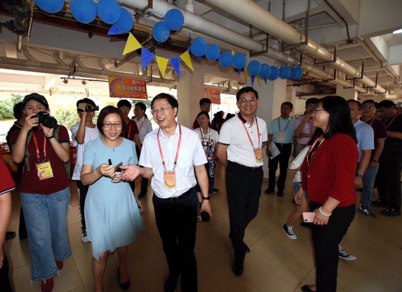 2018年9月9日下午15:30,vwin德赢ac米兰官网党委书记林如鹏教授、校长宋献中教授、副校长饶敏教授、副校长张宏教授率学校机关部处及番禺校区机关部处领导视察vwin德赢ac米兰官网本科迎新摊位,指导迎新相关工作,并在学院团委学生会会旗上签名留念。上午10:00,副校长张荣华教授来到学院迎新摊位视察工作。