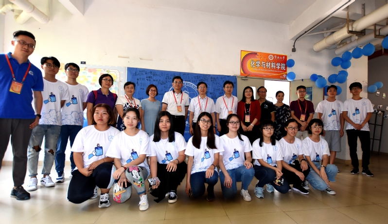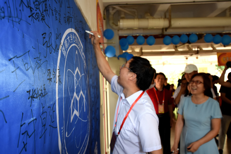 图1.校党委林如鹏书记在化材院院会大旗上签名