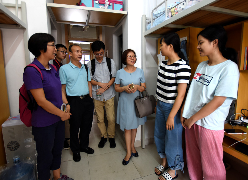 2018年9月9日日下午16:30,新生报到临近尾声,vwin德赢ac米兰官网党委书记邵桂珍及材料科学与工程系党总支容建华、化学系党总支查海燕,学院新生各班班主任、辅导员走访2018级新生宿舍。 图1.邵桂珍一行走访材料系新生宿舍 走访中,邵桂珍一行询问了新生到校的第一印象、及住宿饮食等适应情况,同学们纷纷表示,初入暨南园,优美的学校环境和良好的学习、生活条件让人身心舒畅,大家对于即将到来的大学生活都十分期待。邵桂珍欢迎各位新同学来到暨大,成为vwin德赢ac米兰官网的一员,她强调,能够考入vwin德赢ac米兰官网,各位同学都非常优秀,希望大家能够调整好状态,以崭新的精神面貌开启大学的学习和生活。她强调,明天是2018级新生训练营的第一天,每位同学都要严格按照学校和学院安排认真参与活动,为大学生活树立一个良好的开端。 图2.邵桂珍一行与2018级新生合影