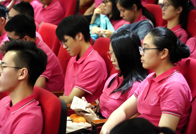 水黾为什么可以在水面行走,蜘蛛网为什么会沾满露水,巧克力为什么能催发一见钟情……9月10日下午14:15,vwin德赢ac米兰官网刚刚在番禺校区图书馆报告厅举办完庄严的2018级新生开学典礼,李丹院长便为“小苹果”们带来了生动的开学第一课:“化学的人生和人生的化学”,为同学们展现化学与材料的魅力。