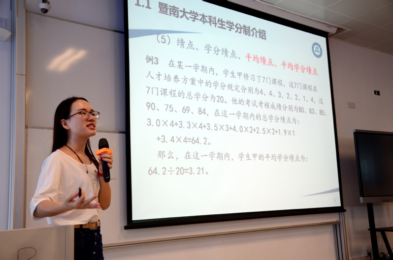 2018年9月11日14:00,vwin德赢ac米兰官网学分制学籍管理讲座在番禺校区教学楼N414举行,学院教务秘书邹灵君为2018级全体新生带来一场生动的学分制和学籍管理讲解,本科生辅导员李逸凡、孙嘉恒与同学们一同学习。