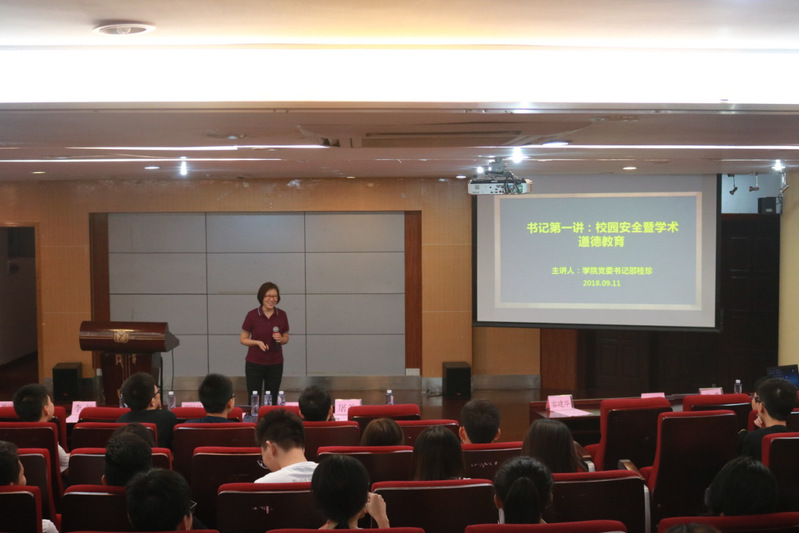 休息之后,邵桂珍书记向新研究生们送上了书记第一课:“校园安全及学术规范”,在校园安全方面,邵桂珍书记以田佳良事件为例,着重讲解了网络安全和意识形态安全等问题,她强调,不要随意转发未经核实的消息、视频等,更不要在网上随意发表错误言论,或被极端势力驱使从事非法活动,研究生们要全身心地专注学习和提升自我,不管是党员还是非党员都要追求进步,要在思想上入党。在生命财产安全方面,邵桂珍提醒新同学们在生活中要注意防火、防盗、防骗,特别要注意防范校园贷及传销陷井,介绍了辨别传销组织的方法,以及陷入传销组织该如何自救等。