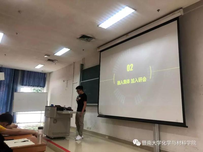 随后,化学系2016级研究生张文彪和材料科学与工程系2017级研究生吴帆与新生们展开了经验分享与交流。张文彪同学分享了自己在科研生活中的心路历程,并且建议新同学们要不畏难题,多加强与师长的沟通,时时传播“正能量”。吴帆同学则介绍了自己在学习科研和研会工作中的付出与收获,在紧张科研的同学也应积极快乐的生活。