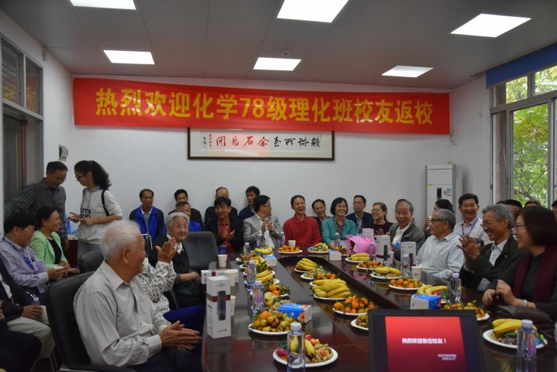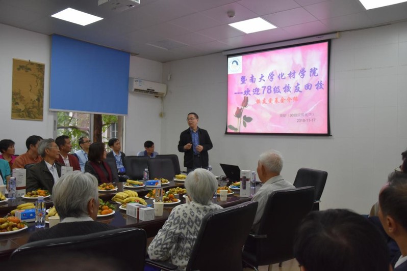 2018年11月17日下午,vwin德赢ac米兰官网78级理化班校友齐聚化学楼,为母校112周年生日送上祝福。五十余名校友不远万里汇聚一堂,怀着感激之情邀请了八位恩师,共同回忆暨大复办四十年来的点点滴滴,为学校的辉煌成就与学院的蓬勃发展送上了诚挚的祝贺。参加活动的退休教师有张仁凤、李钦瑞、郭书好、杨镇桓、方惠平、赖国绪、吴少莲、许世延。学院党委书记邵桂珍,办公室主任黄建新,化学系党总支书记查海燕,学院辅导员孙嘉恒出席了本次活动。