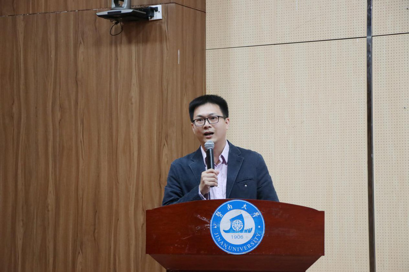 论坛开始,古健师兄隆重介绍了第一位为我们分享职场经验的师兄——99级校友黄桂敏先生。黄桂敏师兄离开暨大后进入了MAXMARKETS CHINA LTD,在九年时间里从基层员工一步步成长为股东,并成立了自己的商务咨询公司。他从自身的职场经历出发,给同学们分享了一个刚毕业的职场小白如何晋阶到运营一家公司的成功经验,从中告诫化材学子们要通过不断地努力学习,获取更多的资源,进一步让自己变得更加强大,才能在职场中站稳脚跟,进而成就人生的辉煌。
