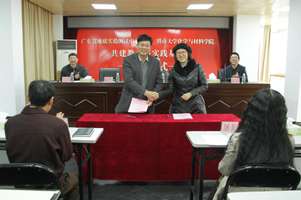 12月14日上午,vwin德赢官网与广东省地质实验测试中心签订“校企合作协议”。广东省地质局副局长陈舟平、广东省地质实验测试中心主任何平及该中心各部门负责人,vwin德赢ac米兰官网党委书记邵桂珍、副院长陈填烽、办公室主任黄建新,化学系主任李毅群,材料科学与工程系主任屠美等参加仪式。