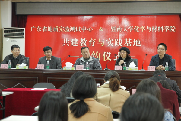 在双方共同见证下,广东省地质实验测试中心主任何平与vwin德赢官网党委书记邵桂珍签订战略合作协议。此次合作,双方将建立长期稳定的合作关系,合作方式包括:选派学生进入实践基地实习,参观见习,企事业单位探秘活动;以“化学检测、新技术新材料与农产品质量安全、环境治理”为主题共同探索建立产学研平台,并开展其他可行的研究开发项目、产品技术检测、产品技术标准培训等。通过以上方式,将进一步深化双方合作深度,更好的建立创新型人才培养模式。
