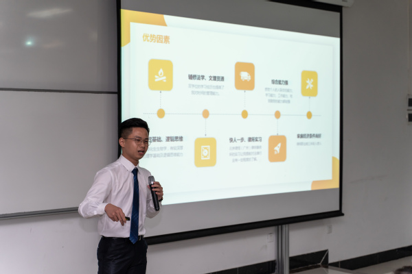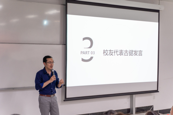 随后,98级校友古健发言,作为“资深师兄”,他认为提早规划职业生涯,提升PPT制作和表达能力对于在校学子适应职业发展至关重要,同时他希望同学们放松心态,专注比赛,无论是否晋级,重在比赛过程中的学习。