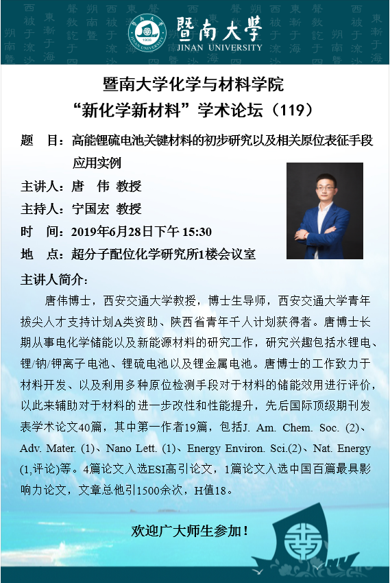 题目:高能锂硫电池关键材料的初步研究以及相关原位表征手段应用实例
