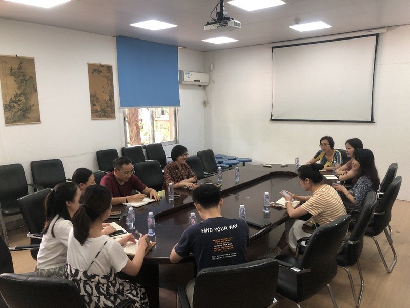 邵桂珍书记传达了学校近期几次会议的相关要求、简要介绍了番禺校区学院新楼的建设进展情况,对接下来要做的学生搬迁工作、开学准备工作、2019级迎新工作、学生思政、以及实验室安全、维稳等工作进行了全面的布署,并就实验室、办公室搬迁具体工作听取大家的意见。邵桂珍对实验中心及院办同志假期坚持工作值班表示感谢,指出现在距离开学还有不足10天的时间,希望各岗位继续坚守好岗位,相互协作,保证开学教学秩序稳定,保证学院搬迁工作顺利进行。