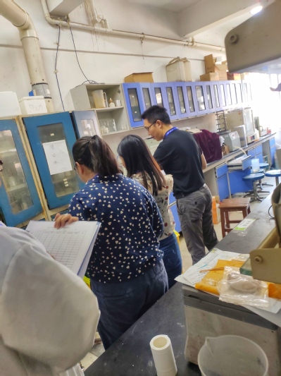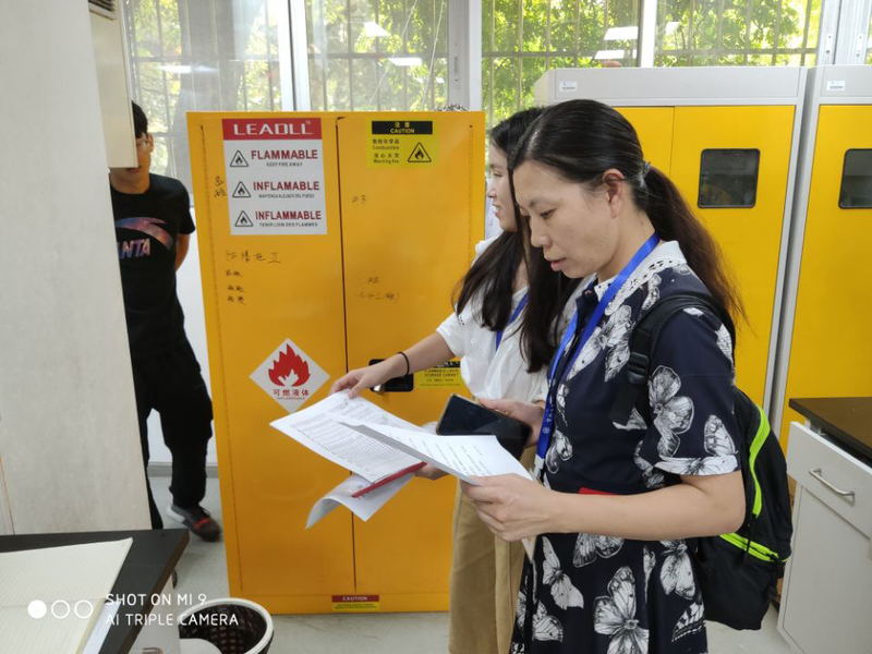 检查对象为石牌校区学院化学楼、第二理工楼、超分子配位化学研究所。参加检查人员有学院副院长陈填烽、材料科学与工程系总支书记容建华、化学系总支书记査海燕、实验员田金环、许佳怡、刘天宇,学院实验秘书肖梦,以及5名安全专员。检查组重点对危化品台账和标签、实验室水电气使用情况进行了检查,同时对环境卫生、消防安全进行了抽查。