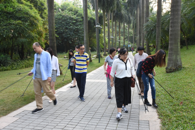 园内绿草如茵,雕塑奇石点缀其间,溪水穿桥绕径,南国花木迎江风而动,花香伴着清风扑面而来。党员们沿着公园跑道捡拾垃圾,细致清理,按照要求将垃圾分类,并集中放到垃圾回收桶。大家的认真感染了公园里游玩的群众,不时有路人加入进来。不知不觉中,两个小时过去,同志们都“战果累累”,大家比着各自的“战果”,感觉特别开心,享受到了劳动的乐趣!