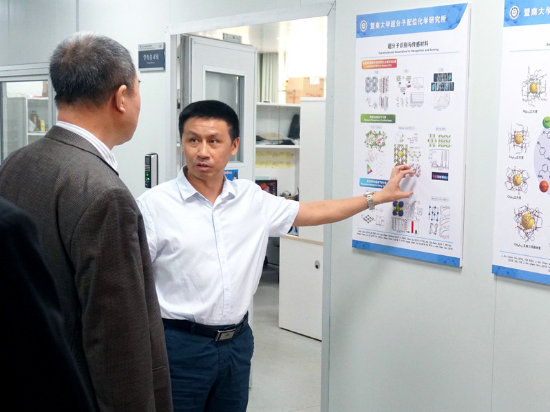 考察期间,vwin德赢ac米兰官网院长、超分子配位化学研究所所长李丹教授带领向徐捷副司长一行参观了研究所实验室环境和实验条件,向各位详细介绍了研究所人才队伍、研究方向、科研成果、仪器设备等方面的开展情况。李丹教授指出,研究所着力发展建设超分子配位化学领域创新研究平台,近年来已在超分子配位组装、光电功能超分子材料、超分子识别与传感等方向的研究取得了系列的创新成果,在国际化学与材料领域受到广泛关注。