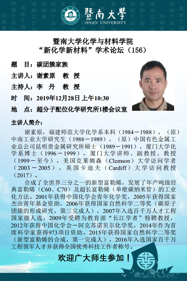 地 点:超分子配位化学研究所1楼会议室