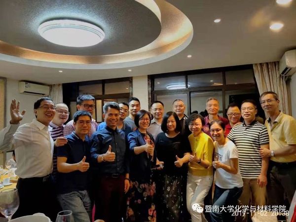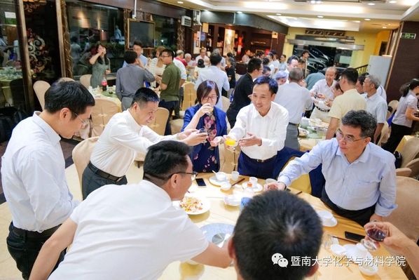 晚宴现场气氛热烈,校友们一片欢声笑语,多年未见的老同学趁此机会把酒言欢,追忆当年校园趣事。90级应用化学专业的17位校友值此良机举办了班级聚会。大家欢聚一堂,回想初来暨南园的模样,再谈谈毕业后的变化,既为时光飞逝而感慨,也为同学情深而欣慰,情到浓时,周毅校友即兴赋诗一首,以纪念这美好的夜晚: