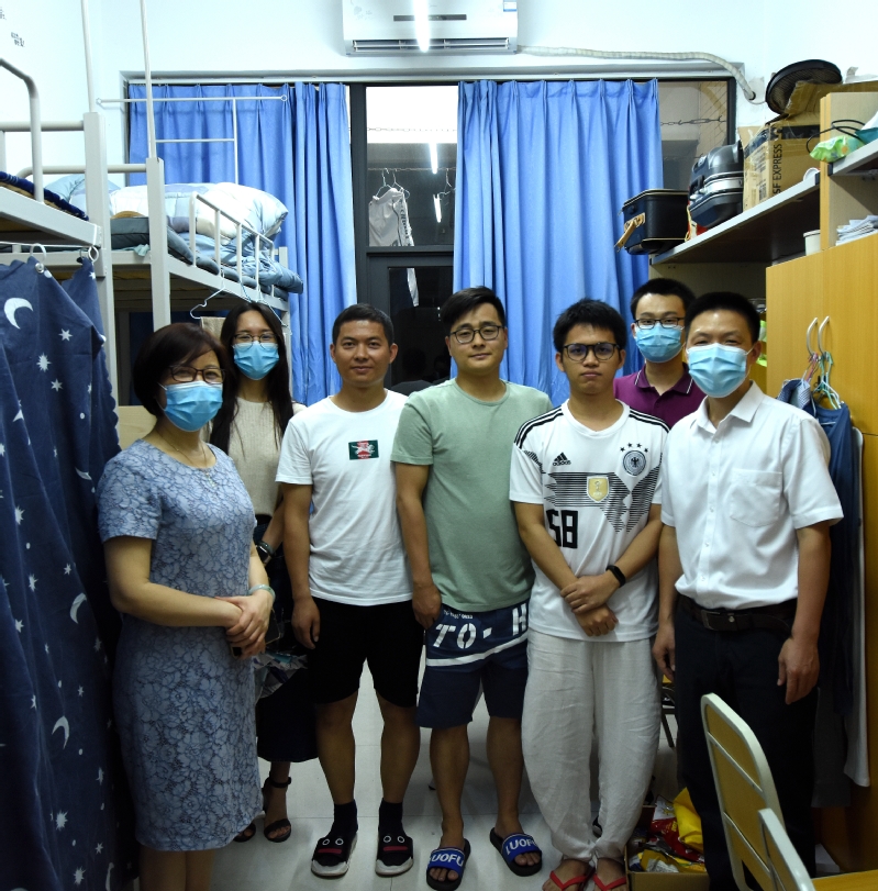 老师们一一询问了7名学生在医学观察区的生活、学习和健康情况,叮嘱他们多锻炼身体、调节心情,自觉服从学校防控规定,并表示学院会及时帮忙解决同学们遇到的困难与问题。同学们表示,感谢学校从每日进餐安排、校园网络、消毒用品等方面所做的精心安排,感谢学院领导老师们的关心关怀。返回学校并入住感觉挺好,这一段时间正好可以安心读书或学习。