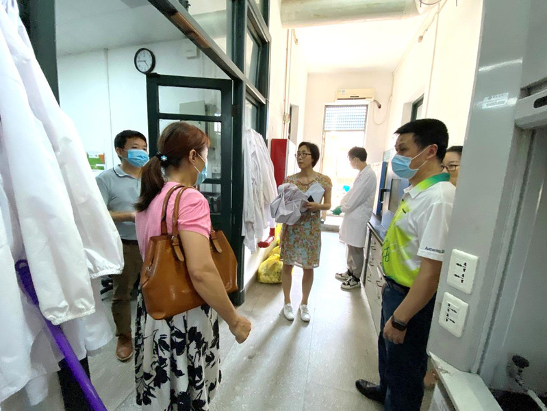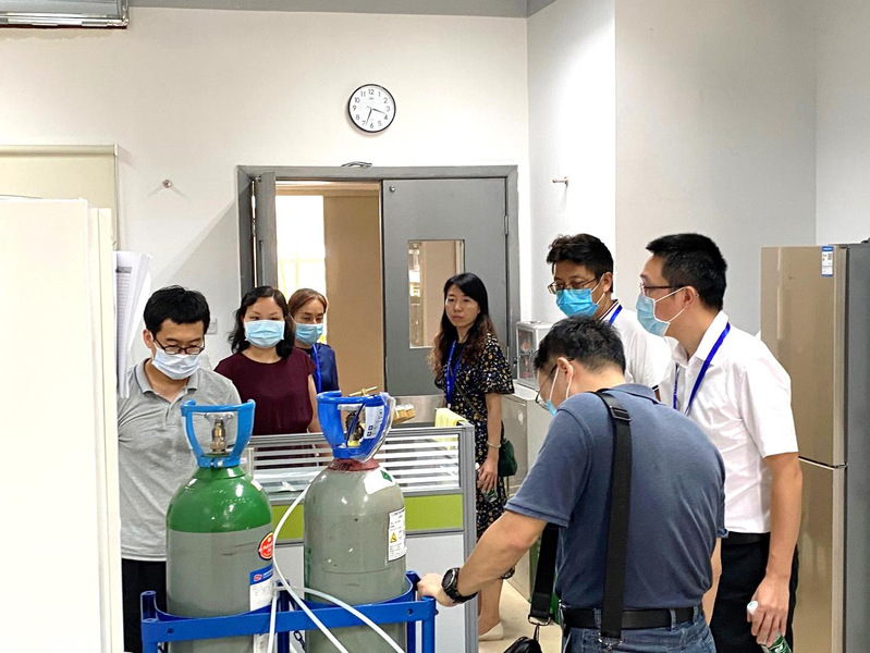 7月17日下午,学院副院长陈填烽带队检查了番禺校区的实验室安全情况。检查对象为F1栋所有实验室。检查小组主要对先前出现问题的实验室进行了“回头看”,并对其他实验室逐个进行了安全隐患排查工作。检查的同时,专家提醒已返校学生务必注意假期实验室安全,认真排查隐患,严防疫情期间出现实验室安全事故,确保暑期各实验室处于安全状态,师生科研和学习工作正常进行。化学系主任李毅群,实验中心常务副主任周艳晖、副主任廖小建、实验员周美云、田金环和肖梦参加了此次检查。