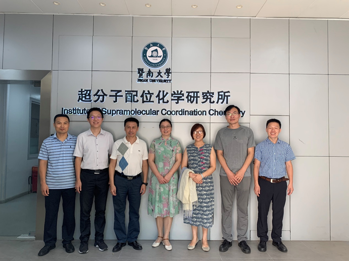 7月28日上午,中国地质大学(武汉)材料与化学学院党委书记黄菊、副院长李国岗一行3人来vwin德赢官网进行调研交流,vwin德赢官网院长李丹、党委书记邵桂珍、副院长陈填烽、党委副书记陈文举出席座谈会。座谈会在超分子配位化学研究所一楼会议室举行。