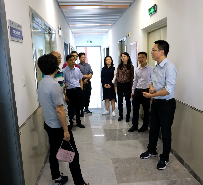 下午,章跃陵院长一行到访我校番禺校区,在李红副院长、陈填烽副院长、陈文举副书记的带领陪同下,重点参观了番禺校区D组团、vwin德赢ac米兰官网楼的布局设计、实验及办公环境、实验条件等。学院领导向各位来访人员详细介绍了各实验室仪器设备方面的情况。