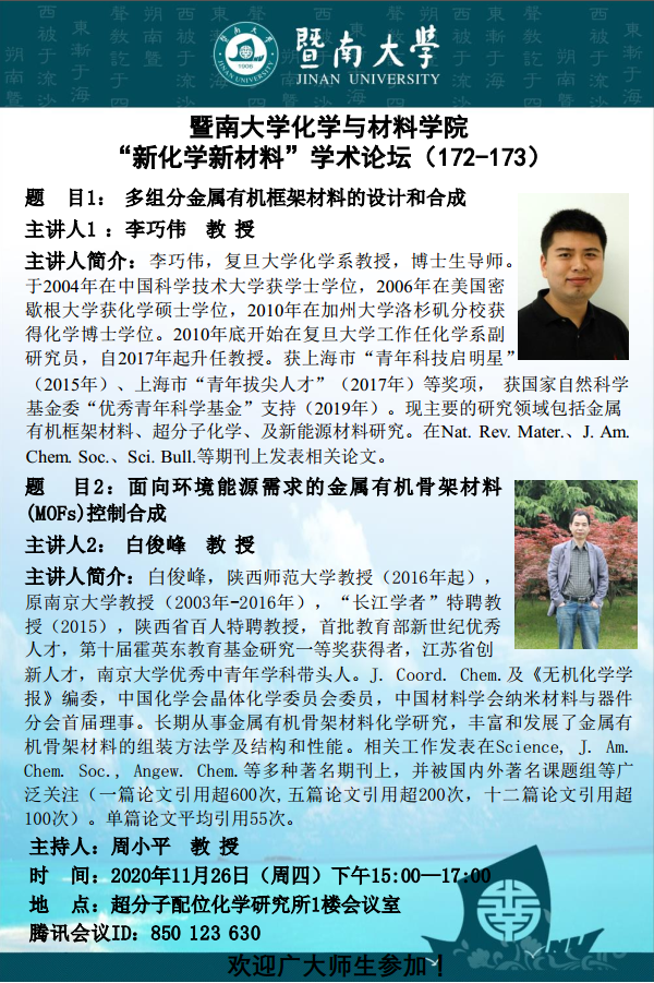 题目2:面向环境能源需求的金属有机骨架材料(MOFs)控制合成