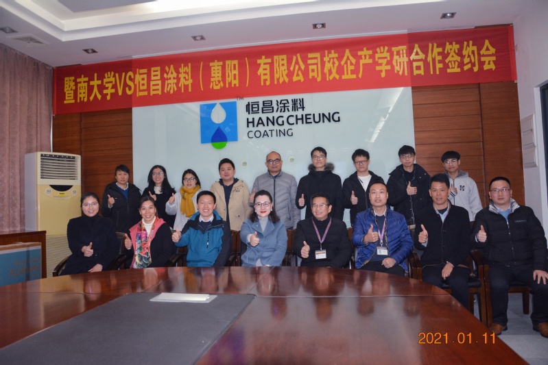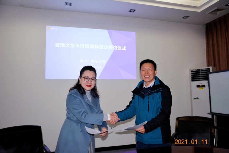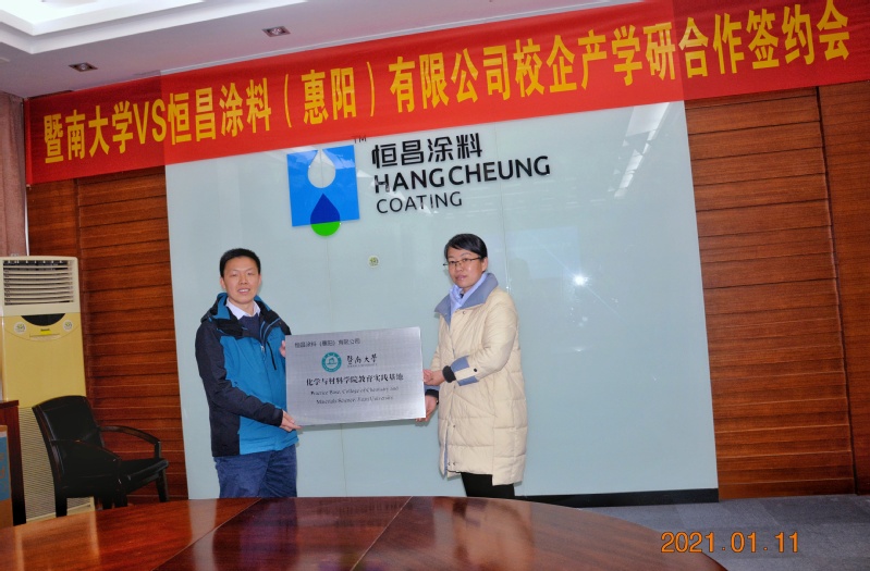 1月11日上午,我院与恒昌涂料(惠阳)有限公司(以下简称恒昌涂料)共建教育实践基地签约授牌仪式在恒昌涂料举行。学院党委副书记陈文举、化学系党总支书记查海燕、教师代表冯鹏举与企业方代表共同出席仪式。