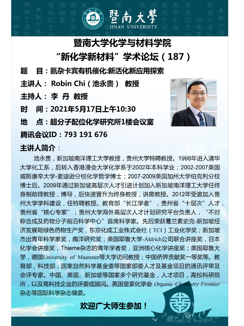 “新化学新材料”学术论坛(187)——池永贵教授