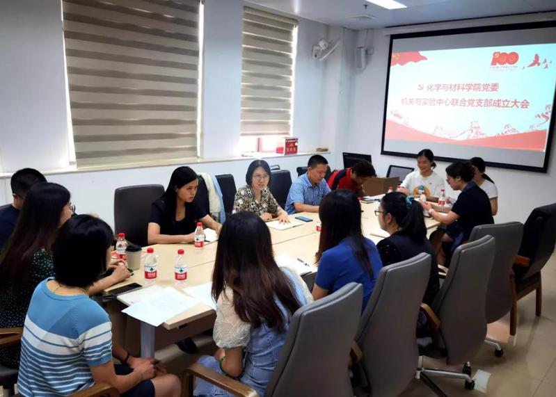 7月9日上午,vwin德赢ac米兰官网党委直属机关实验中心联合党支部成立大会在番禺校区化材楼2033会议室举行。学院党委书记邵桂珍,学院机关、实验中心党员共14人参会,会议由学院党委副书记陈文举主持。成立后支部召开党史学习教育组织生活会,邵桂珍为支部讲授“领袖精神,大国风范”主题党课。