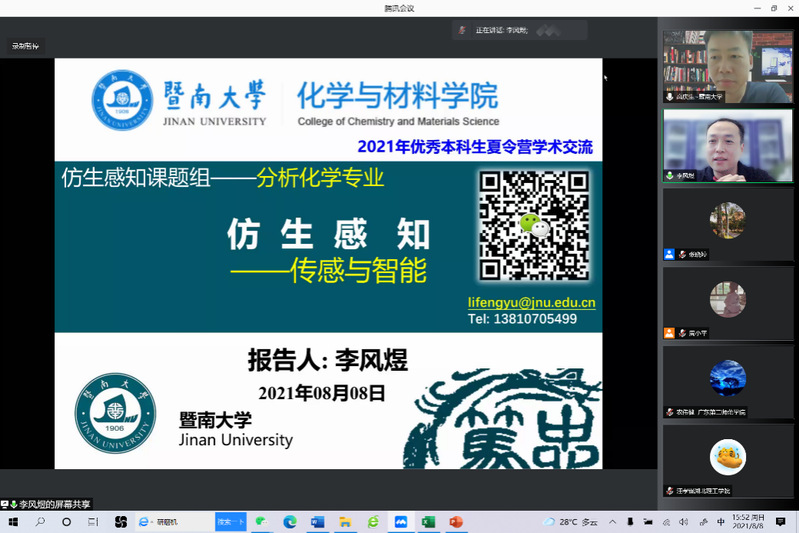 本次活动包括开营仪式、学术前沿讲座、线上参观科研平台、科研团队介绍、面试考核与交流等环节。学院院长李丹、党委书记邵桂珍、副院长李红、副院长陈填烽、党委副书记陈文举、副院长周小平,化学系主任高庆生、材料科学与工程系主任李立华、实验中心常务副主任周艳晖及部分骨干教师参加了本次夏令营的开营仪式。开营仪式由陈文举副书记主持。