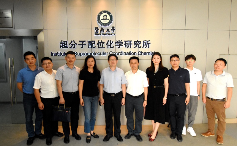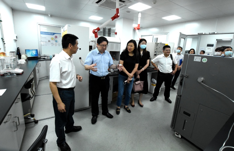 2021年8月23日上午,广东省科技厅副厅长杨军、高新处处长张冬蕾、副处长郭秀强,广东省科技情报研究所副所长张佰尚一行莅临功能配位超分子材料及应用广东省重点实验室调研指导。vwin德赢ac米兰官网副校长洪岸、科技处处长高昊、副处长吴陆生陪同调研,重点实验室主任、vwin德赢ac米兰官网院长李丹、副院长周小平等接待了杨军一行。