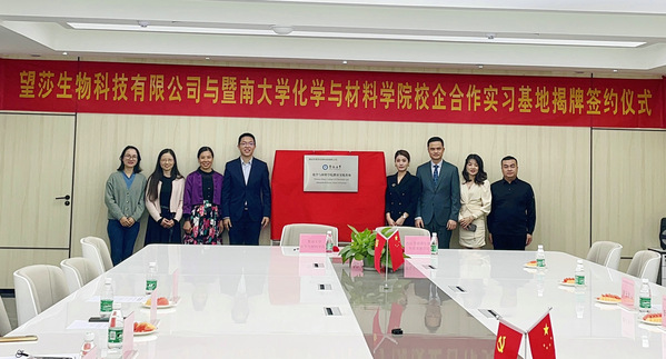 11月19日上午,我院与望莎生物科技有限公司(以下简称望莎科技)共建教育实践基地签约授牌仪式在望莎科技举行。学院副院长陈填烽、化学系党总支书记查海燕、教师代表马丽等与企业方代表共同出席仪式。
