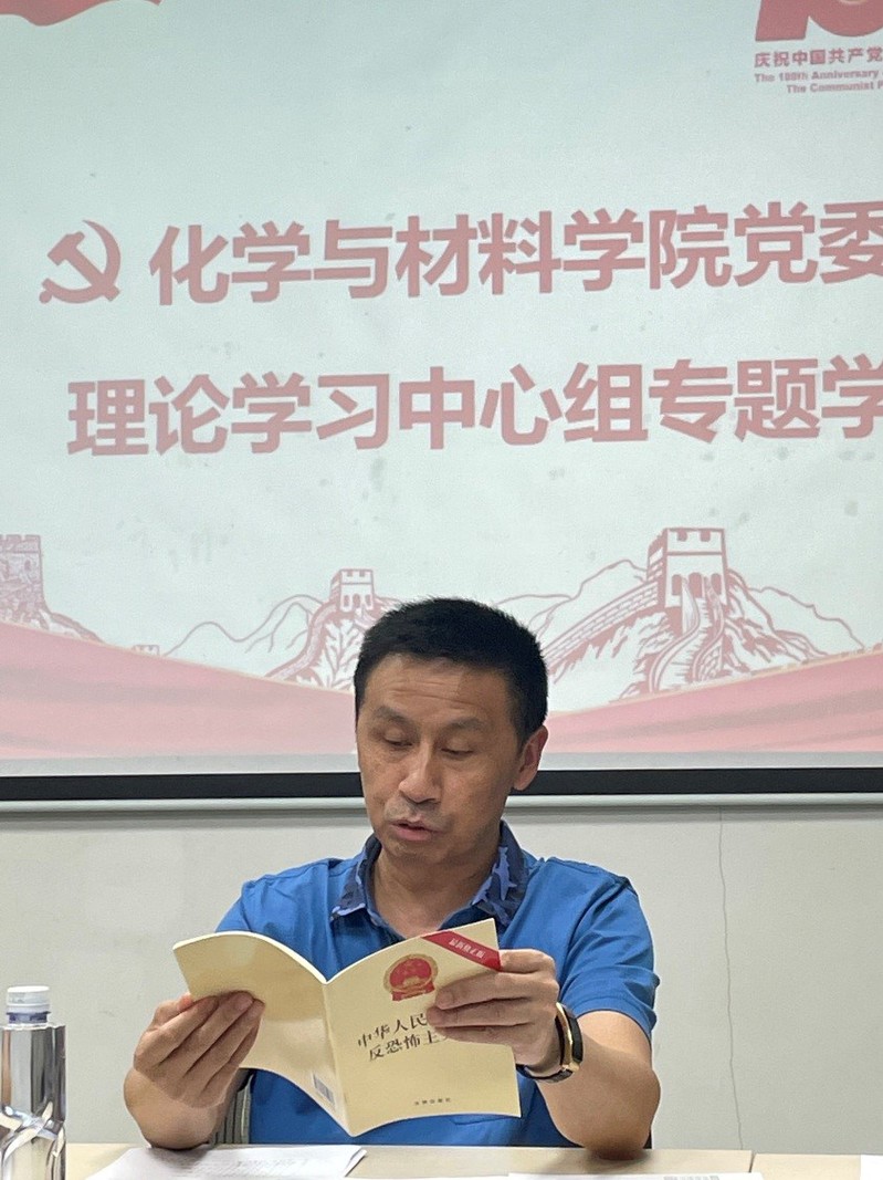 为强化工作纪律,树牢总体国家安全观,感悟新时代国家安全成就,做好近期疫情防控工作,4月15日下午3点,学院党委召开扩大会议,传达学校全面从严治党会议精神,专题学习了《中国共产党纪律检查委员会工作条例》(以下简称条例)及《中华人民共和国反恐怖主义法》《中华人民共和国反间谍法》等国家安全教育日相关内容,重点布置了近期疫情防控工作。理论学习中心组成员党委书记邵桂珍,党委副书记、院长李丹,党委副书记兼学院办公室主任陈文举,党委委员副院长李红、陈填烽,党委委员材料科学与工程系党总支书记容建华、化学系党总支书记查海燕参加会议。副院长周小平、学院系所中心主任及学院组织员列席会议。会议由学院党委书记邵桂珍主持。