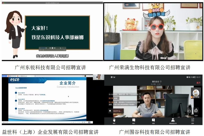 广州东锐科技有限公司、广州荣满生物科技有限公司、益世科(上海)企业发展有限公司、广州围谷科技有限公司等4家企业的相关人员进行了在线宣讲及互动。