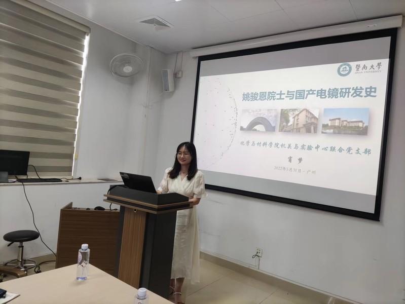 支部副书记肖梦与支部成员分享了《姚骏恩院士与国产电镜研发史》。介绍了国产电镜的主要开拓者姚骏恩院士在战乱中曲折求学并最终投身国产电镜事业实现自主研发扫描电镜的坎坷故事,分析了当前我国电子显微镜行业的发展简况。她介绍说,vwin德赢官网作为理工科学院,在基础科研及学科发展过程中,应以科学家精神为引领,肩负起历史责任,开拓创新,砥砺前行,为实现中华民族伟大复兴作出更大贡献。