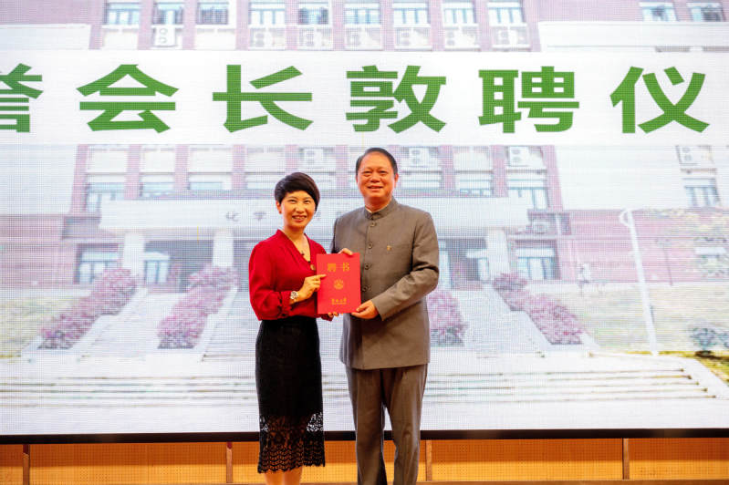 (vwin德赢ac米兰官网校友总会秘书长梁燕女士,为梁仲景先生颁发vwin德赢ac米兰官网校友联谊会名誉会长聘书)