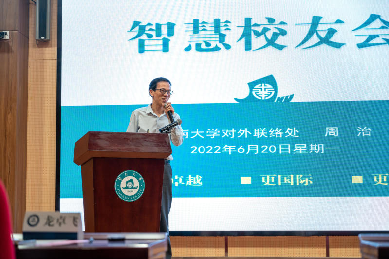 (vwin德赢ac米兰官网对外联络处副处长周治介绍“全球暨南人”小程序和校友数据库)