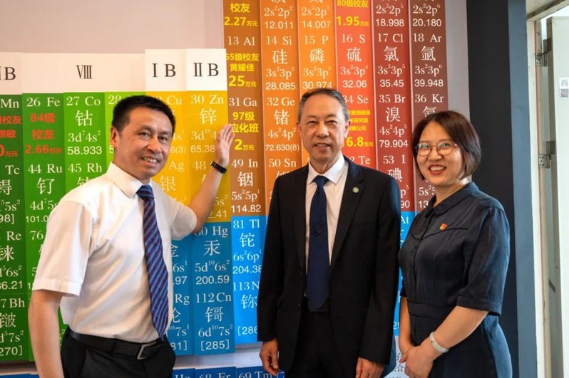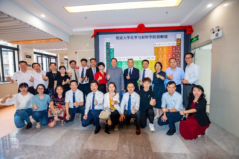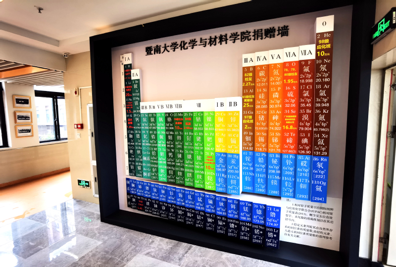 在建院5周年之际,化材院积极策划、提炼学院文化内涵,以具有学科特色的化学元素周期表的创新形式设计制作捐赠墙,镌刻建院以来对学院发展给予1万元以上帮助和支持的个人和团体以及企业名称、捐赠数额,以此表达铭记和感恩,其中具体元素由捐赠主体选取,内容根据捐赠情况持续更新。