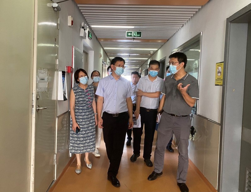 8月23日下午,翁健副校长一行来到番禺校区化材楼检查实验室安全工作。实验室与设备管理处副处长饶星等相关人员参与检查。学院党委书记邵桂珍、副书记陈文举、实验中心常务副主任周艳晖陪同检查。