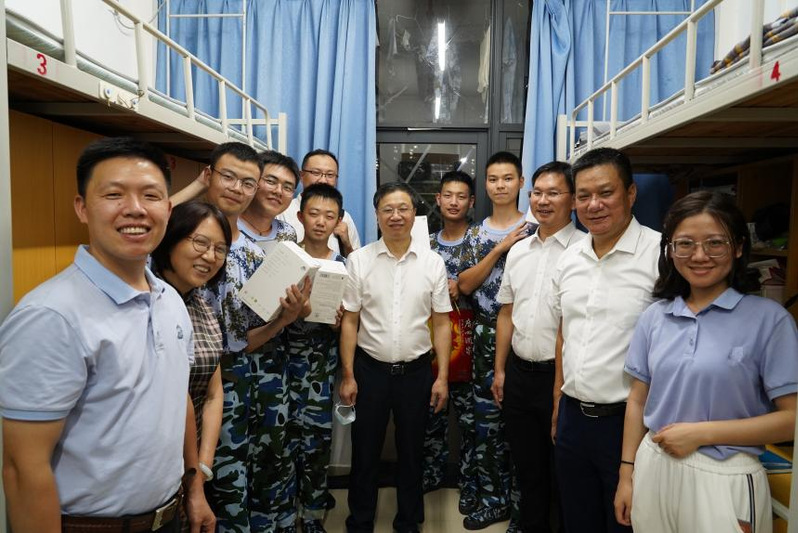 8月29日晚上,vwin德赢ac米兰官网校长宋献中、副校长翁健一行来到番禺校区T4栋学生宿舍,走访看望vwin德赢ac米兰官网2022级新同学,带来暖心的问候与节日的祝福。校党委学生工作部部长张志,本科生院执行院长、教务处处长张小欣等机关部处领导,vwin德赢ac米兰官网党委书记邵桂珍、党委副书记陈文举一同走访。