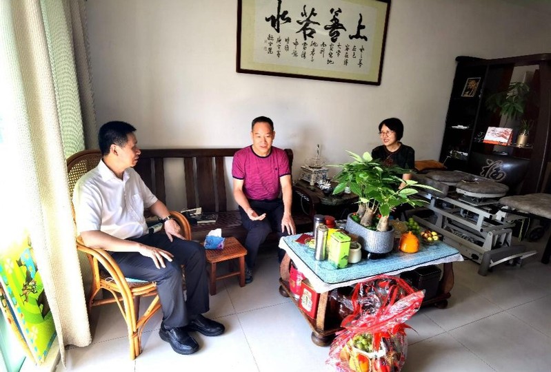 上午9:00,学院领导一行来到化学系郑文杰教授家,为他献上节日祝福并带来果篮和慰问红包。李丹介绍说,学院教师刚刚获批了12项国家自然科学基金,总额近一千万元,位列全校第三,取得这样的阶段性成绩,离不开老一辈打下的良好基础。郑文杰对领导们的关心表示感谢,认为化材院成立以来,学科发展迅猛、成绩喜人,尤其是化学一级学科博士点的获批,圆了几代暨大化学人的梦想,为学科的高速发展提供了优异的平台。邵桂珍感谢郑文杰对学院和学科发展所做的贡献,表示新一代化材人将秉承前辈之志,持续为学院和学科的发展贡献力量。随后,学院领导一行与郑文杰就化学学科的建设进行了沟通交流。