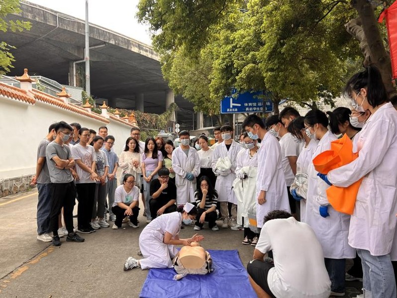 (医护人员做急救演示)