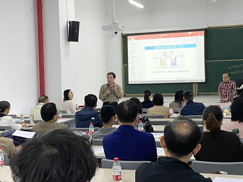 到场观赛的老师们也结合自身教学经历提出建议。张渊明老师指出,教师对待课堂的态度就是学生对待老师和课程的态度,希望新教师提高对教学的重视程度,思考如何更好的引发学生对课程的兴趣。高庆生、刘杰等老师从声音抑扬顿挫、肢体语言、课程思政、科研成果融入教学内容等方面对新教师提出了建议。2021级应用化学专业王奕杰同学作为学生评委表达了对谢默老师的课堂教学的肯定。这也是vwin德赢官网在教学竞赛过程中首次引入学生评价,以此促进师生互通,师生互动,提升教学质量。