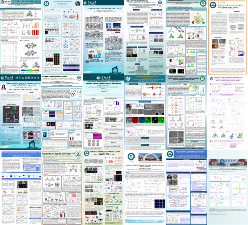 在化学系、材料系和超分子配位化学研究配所的推荐下,共选出20名研究生参加口头报告和39名研究生的优秀成果进行墙报展示。学院邀请了陈晓丹、董留兵、曹丽伟、吴涛、杨芳、于涛、陈金铸、宁印、刘明贤9位来自不同学科的老师担任点评专家,他们分别主持学生的口头报告、进行点评、提问和探讨,并针对每位学生的报告提出了中肯的建议,让广大学生在交流过程中受益匪浅。另外,他们还担任电子墙报的评委并打分评选出18份优秀墙报。